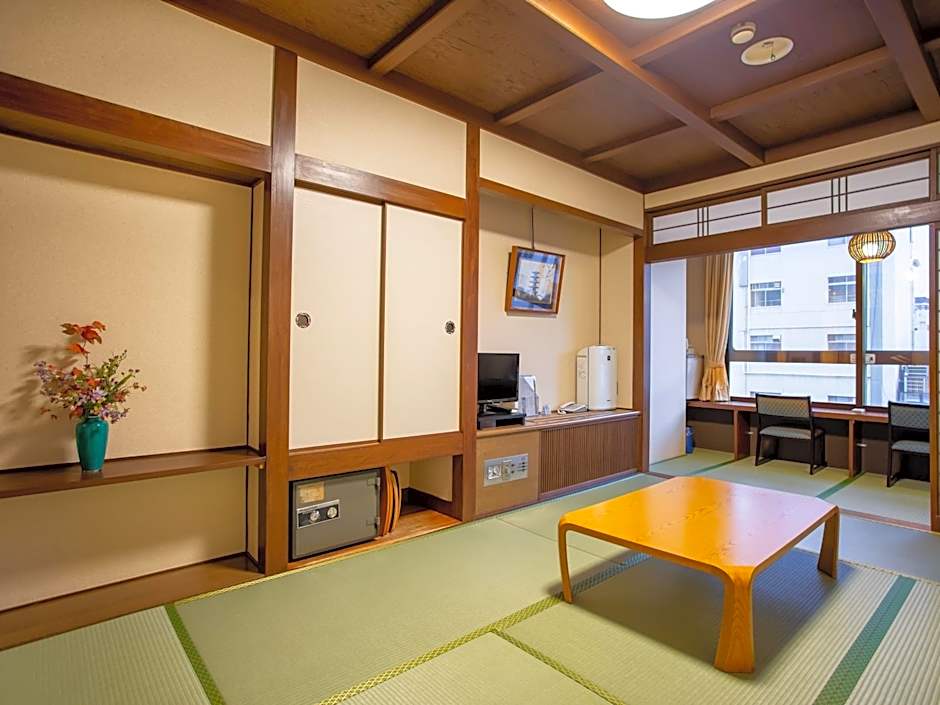 The family room offers air conditioning, tatami, as well as a private bathroom boasting a bath and a shower. The family room provides a safe deposit box, yukata, heating, a flat-screen TV, as well as city views. The unit has 2 futons.
